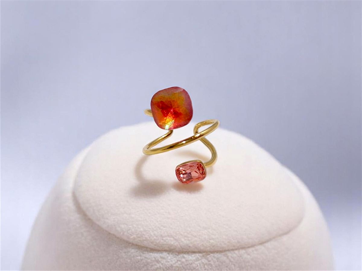 - 2 pierres dans les tons corail et rose profond - finition brillante et éclat chaud
